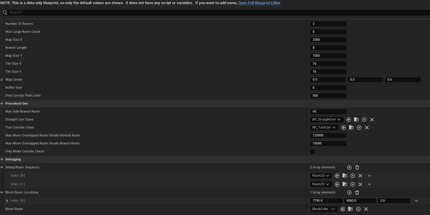 - In the ProGen actor's debugging section, specify two room actors in